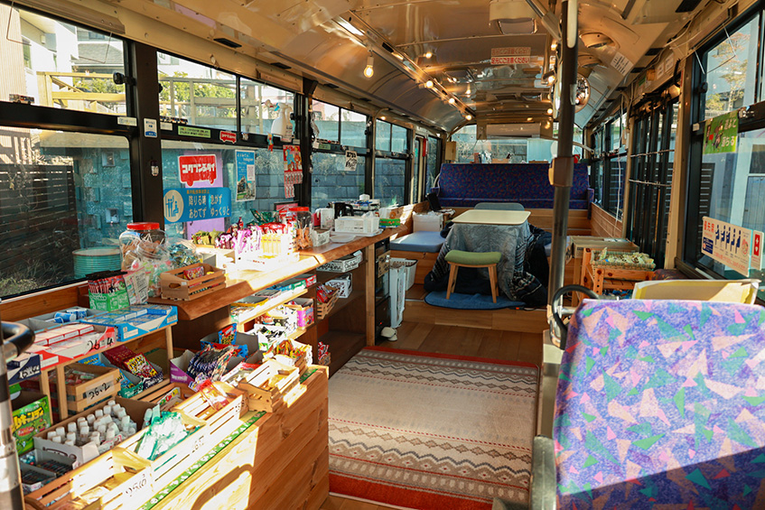 ーー中はバスだった時の様子を残しつつ、思わぬ形にリフォームされているのですね。コタツがあるなんて不思議な光景です。