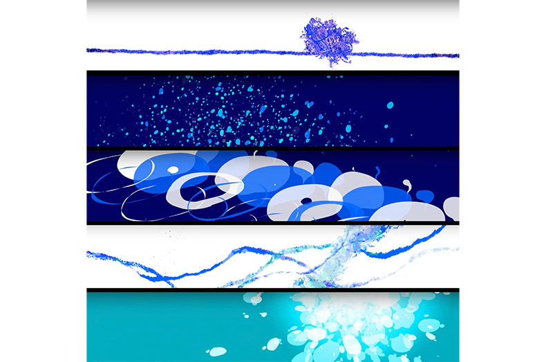それを参考にできあがった作品は、私なりの感性で頭に描いた水の彫刻を流動的なアニメーションとして表現したものです。青く彩られた水の緩急のある動きを見て、一生懸命頑張った結果、疲れ、傷ついた心を癒してくれる作品にしたいという私の思いが伝わる映像に仕上がっていれば嬉しいです。