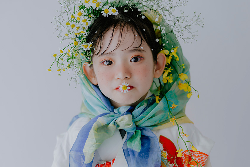 一方で、2026年1月にオープンした「Lapin L'Atelier」は白一色のまっさらな空間。季節の生花を使って撮影することも特徴のひとつです。子どもを主役にしたアート作品のような撮影ができます。